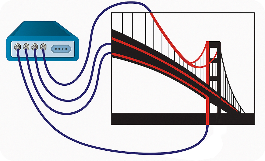 FBG sensors enable real-time monitoring of strain, temperature, and vibration within structural systems, delivering significantly enhanced performance compared to traditional monitoring methods. Our solution provides precise, actionable insights that empower proactive maintenance strategies and effective risk management, helping to ensure the long-term integrity and reliability of your assets.